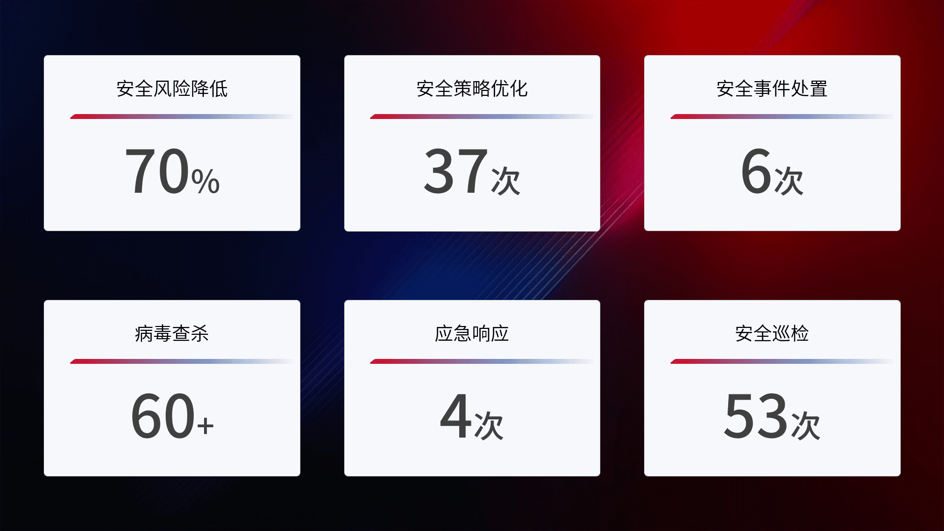 提供全面的安全事件报告体系,,,,包括处置报告、、周报、、季度和年度总结,,,,结合持续监控,,帮助客户深入了解网络安全状况。。。