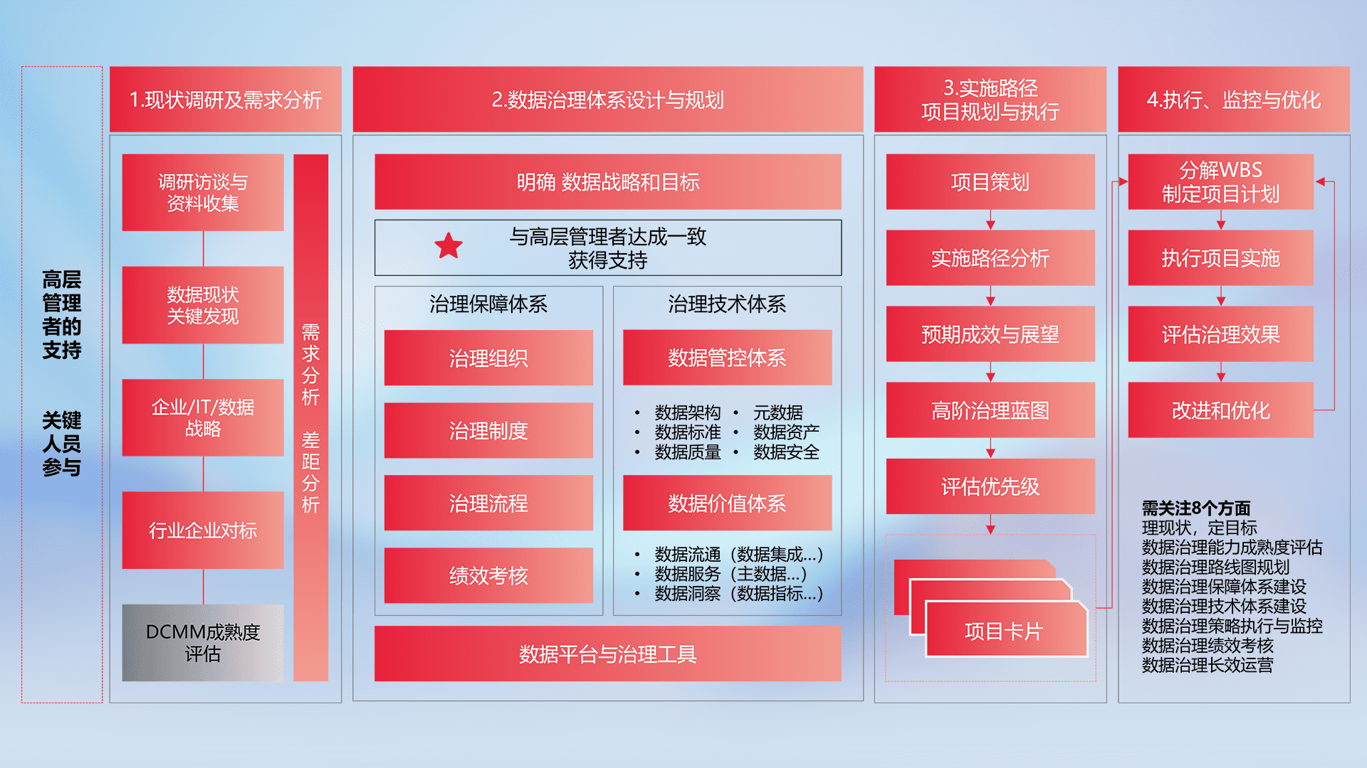 制定并执行统一的数据标准,,,,规范数据定义和格式,,,,消除冗余和不一致性,,实现跨部门和跨系统的数据一致性,,,为企业提供标准化的数据基础。。。。